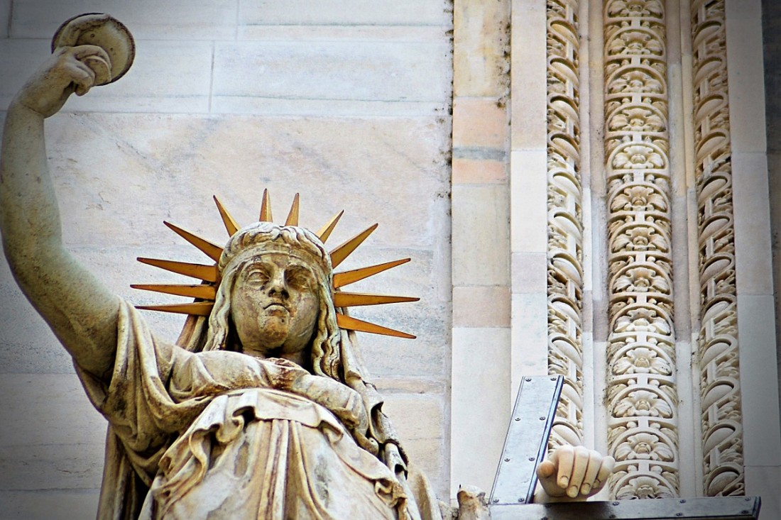 Socha z roku 1810 je dielom Camilla Pacettiho a znázorňuje Nový zákon (La legge nuova). Podobne ako jej známejšia kolegyňa, ktorá dominuje New Yorku, milánska socha slobody zviera v pravej vzpriamenej ruke (menšiu) pochodeň, ľavou sa opiera o kríž. Kde sa podeli tabule, ktoré drží newyorský monument? Bartholdi po ne nešiel ďaleko. Požičal si ich od sochy na druhej strane balkóna, ktorá reprezentuje Starý zákon (La legge vecchia). Francúzi vehementne popierajú, že by ich krajan okopíroval milánske dielo a ako zdroj inšpirácie uvádzajú Kolos z Rhodosu. Nech už je to akokoľvek, Miláno je v Taliansku označované za New York Apenínskeho polostrova. A zďaleka to nie je preto, že má svoju sochu slobody.