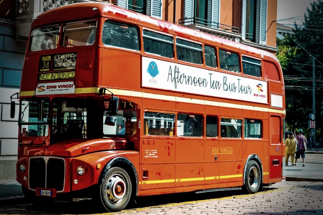Z Benátskej lagúny si teraz odskočíme na Britské ostrovy. Čo má spoločné Miláno a Londýn? V určitom ročnom období zrejme hmlisté a ponuré počasie, ale po celý rok červené poschodové autobusy. Že tie už sú v každom meste? Súhlasím, ale tento je iný. Na rozdiel od tradičných turistických vozidiel s otvorenou strechou ponúkajúcich klasické prehliadky s audiosprievodcom, ide o originálny londýnsky doubledecker zo šesťdesiatych rokov. Do Milána ho dopravila spoločnosť Neiade, ktorá sa tiež zaoberá organizovaním prehliadok mesta, zato veľmi netradičnou a zábavnou formou.