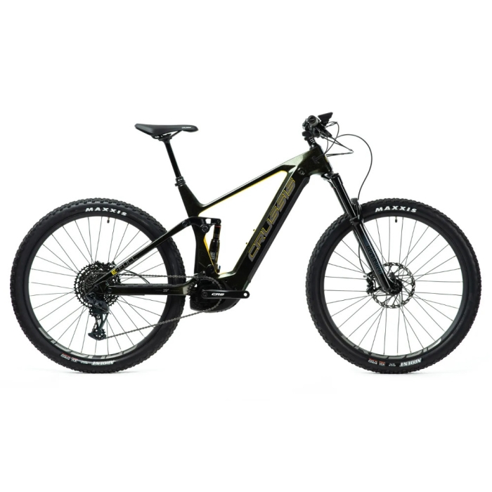 S Crussis e-Full 12.9 sa dostanete, kam budete chcieť, a to bez otáľania a kompromisov! Tento celoodpružený e-bike vás prevedie divokým terénom aj na miesta, ktoré by ste si inak museli nechať ujsť! Hlavnou prednosťou je samozrejme špičkový motor BOSH Performance CX, ktorý vás spolu s vysokokapacitnou batériou Bosh PowerTube 750 dovezie až 170 km ďaleko! Všetko ovládate pomocou LCD displeja BOSH Kiox 300, kde je k dispozícii aj asistent chôdze či USB port pre dobíjanie mobilného zariadenia. Veľkým lákadlom je tiež samozrejme špičková súprava radenia SRAM Eagle NX s 12 rýchlosťami, ktorá spoločne s hydraulickými brzdami SRAM Guide T a uzamykateľnou vidlicou ROCKSHOX FS 35 Gold RL DebonAir 29" BOOST so zdvihom 150 mm zaručuje bezpečnú jazdu v každom teréne. Vzduchovú vidlicu dopĺňa zadné tlmenie ROCKSHOX Deluxe Select + RT, 205x60mm. O priľnavosť k náročným povrchom sa postarajú plášte MAXXIS Rekon Race. Šliapnite do pedálov a vydajte sa na miesta, kam sa s normálnym bicyklom nedostanete!