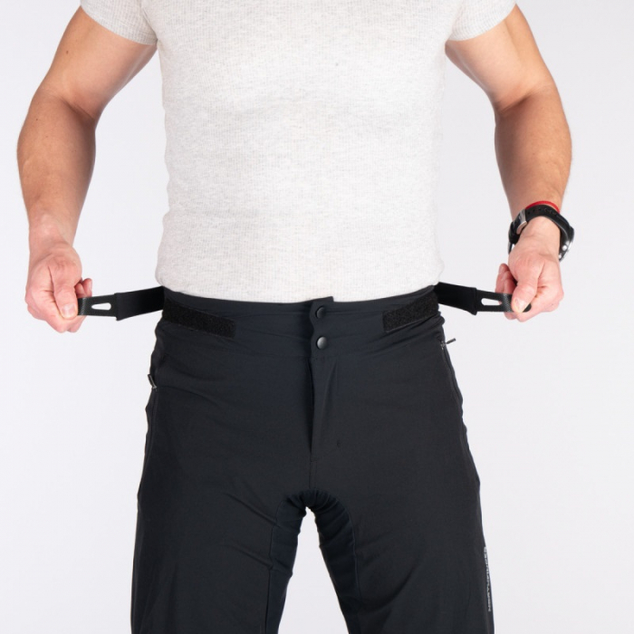 Vrchné kraťasy na bicykel disponujú nastaviteľným elastickým After flex pásom na suchý zips.