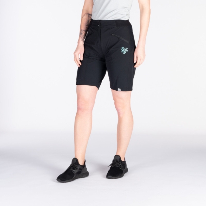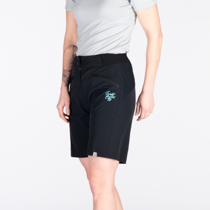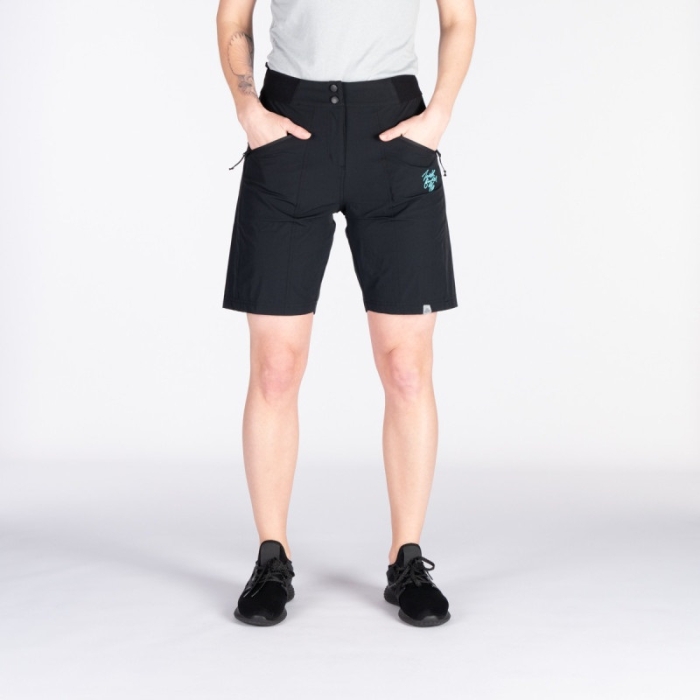 Sú navrhnuté systémom 2v1, majú vnútorné elastické šortky a cyklovložku.Cyklistiké kraťasy pre dámy sa zapínajú na zips s patentkami.
