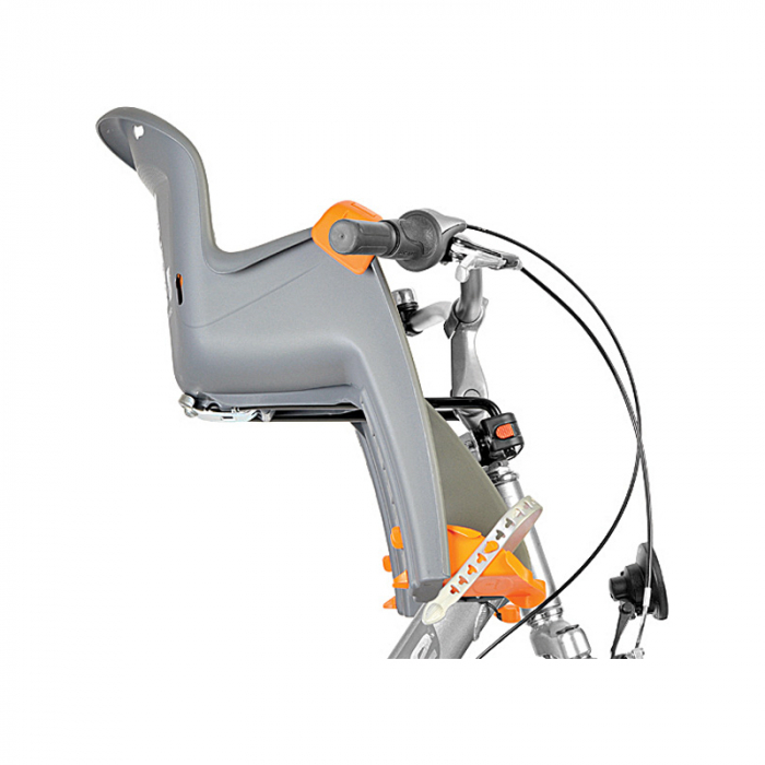 Detská sedačka na bicykel značky Polisport. Predná sedačka na bicykel s držiakom na prednú rámovú rúrku alebo predstavec kruhového aj oválneho priemeru 22 až 40mm.Umiestnenie a vybratie sedačky je veľmi jednoduché, stačí stlačiť tlačidlo zámku a sedačku vybrať.