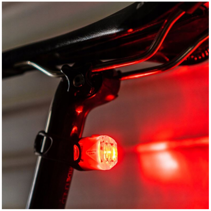 Cyklistické svetlo sa pripevňuje pomocou gumeného popruhu a je kompatibilné s trubkami rôznych priemerov.
