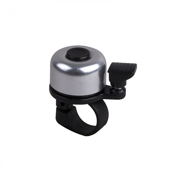 Zvonček na bicykel značky Pro-T.Menší zvonček v čierno - striebornom prevedení má klasický dizajn.