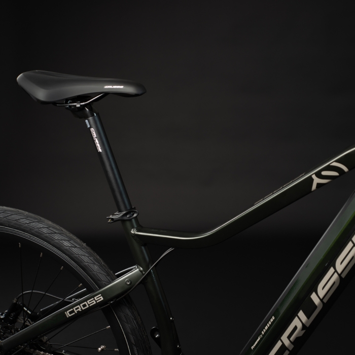 Crussis ONE-PAN Cross 9.8-M je exkluzívny jednofarebný e-cross na športové jazdenie po ceste, cyklotrase aj v ľahšom teréne! Ako krosový model je skvele vyvážený, a to hlavne vďaka výbornej geometrii a špičkovému stredovému motoru PANASONIC GX Ultimate, ktorý váži iba 2,95 kg a aj pri nízkej kadencii poskytuje vysoký krútiaci moment 95 Nm. Poháňa ho Samsung batéria s kapacitou 20 Ah, ktorá vás dovezie až 170 km ďaleko. Stupeň elektrickej dopomoci si nastavíte na farebnom LCD displeji, kde nájdete aj USB port na dobíjanie mobilu. Bicykel je postavený na 28" kolesách obutých do kvalitných plášťov Schwalbe Energizer Active. Super radenie SRAM SX Eagle ponúka 12 rýchlostí, zatiaľ čo o bezpečnú jazdu sa starajú kotúčové hydraulické brzdy. So vzduchom tlmenou vidlicou ROCKSHOX FS Paragon Gold so zdvihom 65 mm potom môžete vyraziť aj do ľahšieho terénu. S Crussis PAN-Cross budete jednoducho vždy pripravení vyraziť!