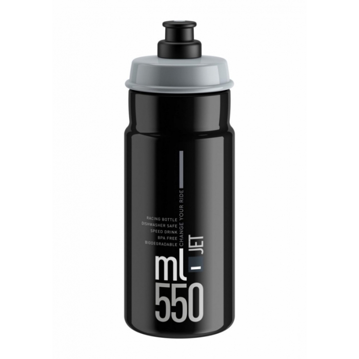 Cyklistická fľaša značky Elite.Fľaša Jet 550 ml má elegantný čierny dizajn.