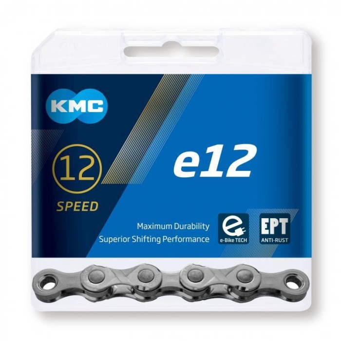 Reťaz na bicykel značky KMC.Vysoko odolná a spoľahlivá 12-rýchlostná reťaz je špeciálne vyrobená pre elektrobicykle so stredovým motorom.