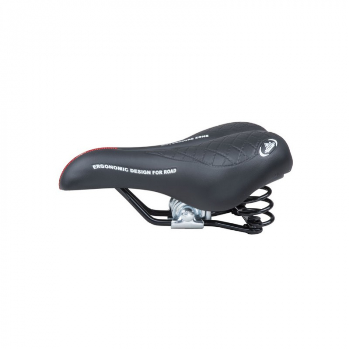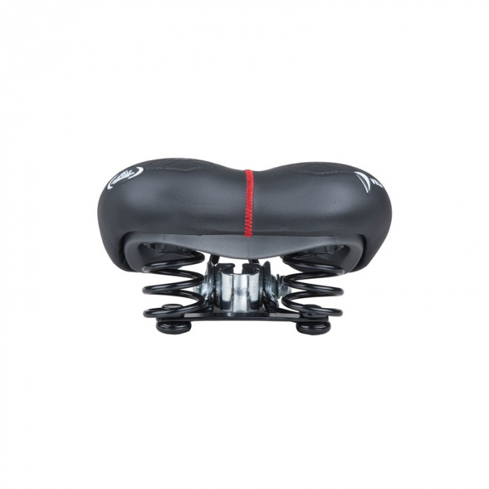 V strede sedadla je otvor.Čierne sedadlo na bicykel s červeným prešívaním má nielen moderný vzhľad, ale je aj veľmi pohodlné.