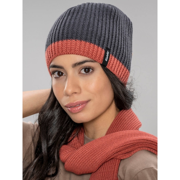 Čiapka značky Eisbar. Pohodlná a hrejivá zimná čiapka v minimalistickom dizajne je vhodná pre pánov aj dámy.Sivú čiapku zdobí červený spodný lem a nášivka s logom značky.