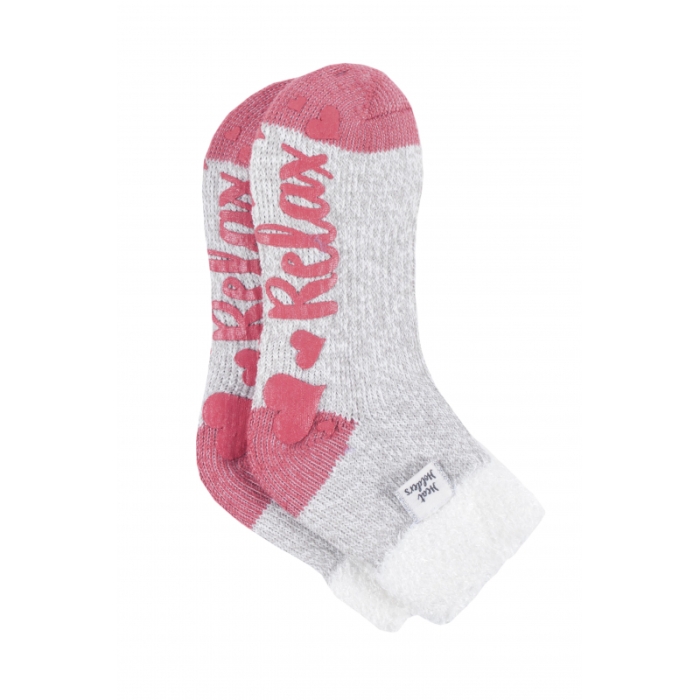 Dámske ponožky značky Heat Holders.Šedé ponožky s ružovými detailami a bielym páperovým lemom sú ideálnym kúskom na doma.
