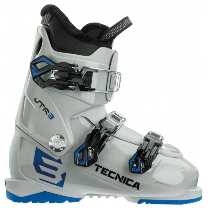 Lyžiarky značky Tecnica.Model JTR 3 v modernom sivom prevedení s modrými prvkami.
