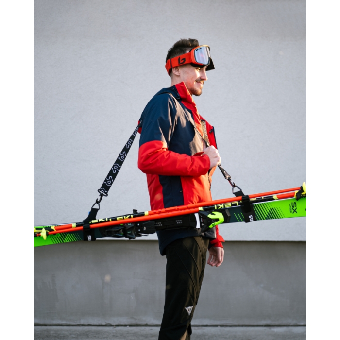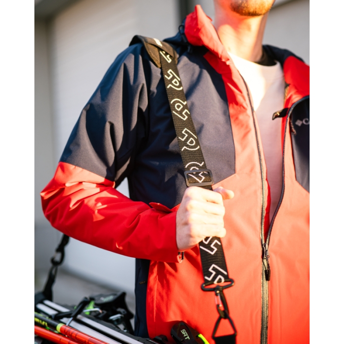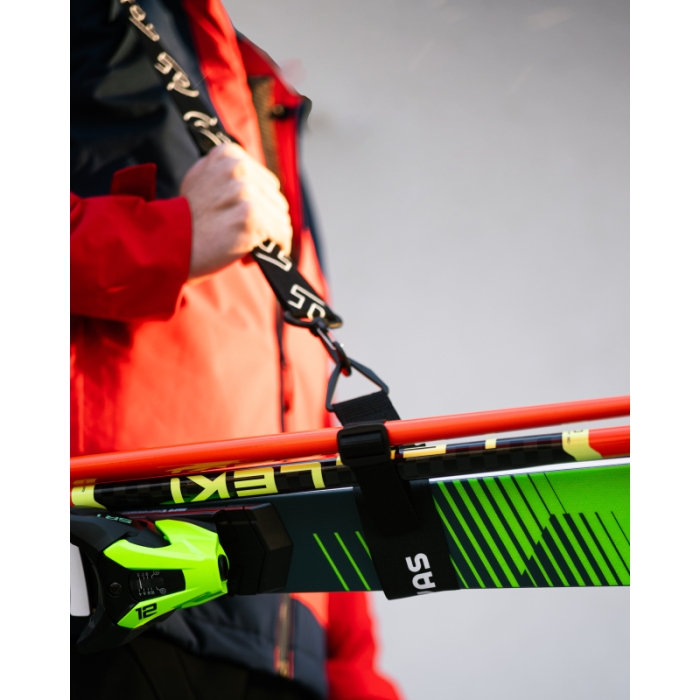 Univerzálny a nadčasový dizajn je vhodný pre bežné aj veľké lyže, vydrží aj niekoľko sezón a jeho komponenty odolávajú aj nízkym teplotám. Popruh na suchý zips prenášaný cez rameno vytvára pohodlný spôsob, ako udržať všetky lyže a palice pri transporte pokope.Popruh na nosenie lyží chráni aj Váš chrbát pred bolesťou a namáhaním a pomáha predchádzať bolesti rúk.