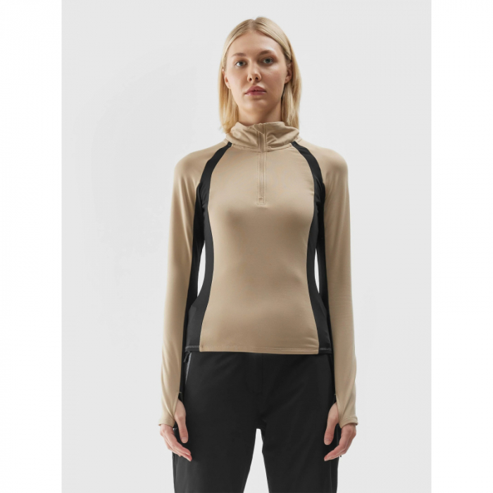 Dámska mikina značky 4F. Lyžiarska mikina pre dámy má moderný dizajn a je vhodná aj na iné zimné športy.Dizajn opticky zoštíhľuje postavu a vďaka pružnému materiálu ju pekne tvaruje.
