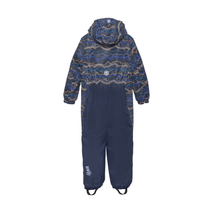 Chlapčenský overal značky Color Kids. Teplý overal na zimu pre deti poskytne potrebný tepelný komfort vďaka hrejivej výplni z polyesteru.Zaujme svojím dizajnom s farebnou potlačou a je výbornou voľbou na všetky zimné radovánky. Výhodou je membrána s vodným stĺpcom 10 000 mm a priedušnosťou 8 000 g/m2/24h.