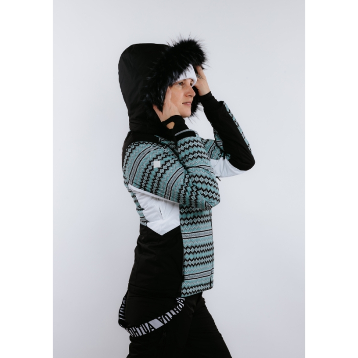 Dámska bunda značky Authority. Lyžiarska bunda pre dámy vyniká trendy farebným prevedením s potlačou so zimným vzorom.Vďaka membráne s vodným stĺpcom 5 000mm Vás navyše ochráni aj pred snehom či dažďom.