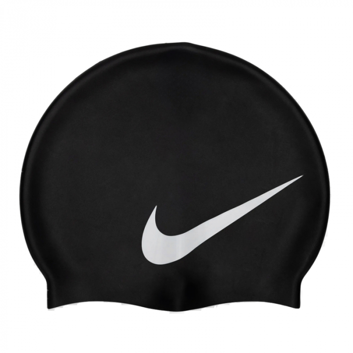Bola vyrobená z hypoalergénneho silikónu vysokej kvality. Kúpacia čiapka Nike má minimalistický dizajn a zdobí ju veľké logo bielej farby na boku.