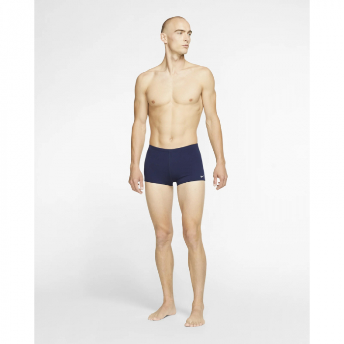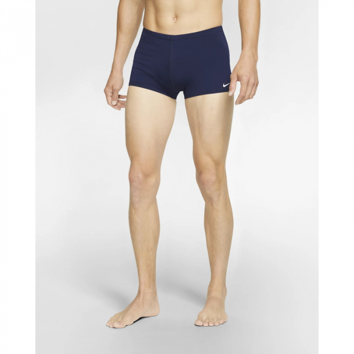 Pánske plavecké plavky značky Nike Swim. Športové plavky majú obľúbený strih v štýle boxeriek. Sú určené na voľnočasové plávanie aj pre športových plavcov na súťažiach.Ich minimalistický dizajn v modrej farbe dotvára biele logo Nike na ľavom boku.