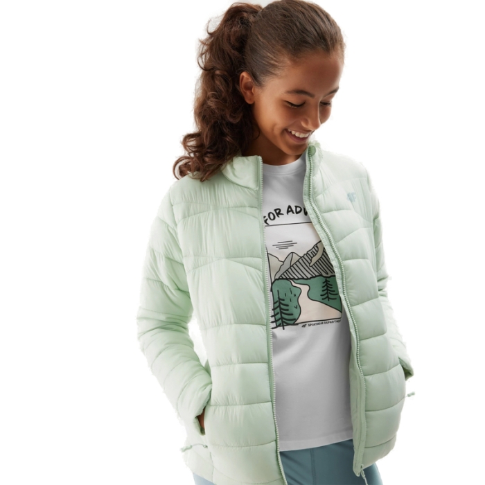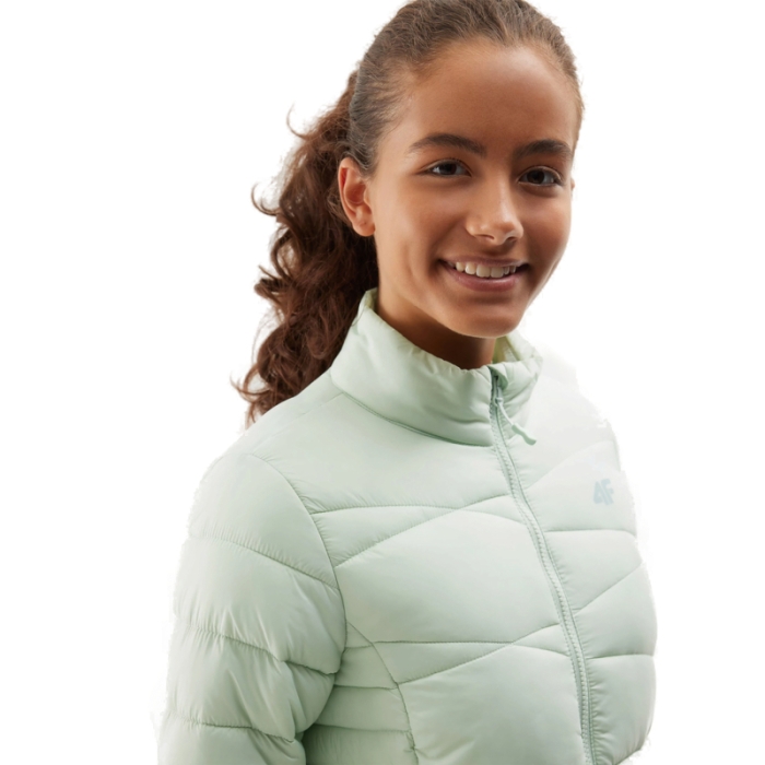 Dievčenská bunda značky 4F. Značková bunda s prešívaním poteší všetky slečny, ktoré majú radi moderný štýl obliekania. Dievčenská vetrovka disponuje stojačikom, ktorý príde vhod hlavne v sychravom a veternom počasí.Svetlozelená vetrovka oživí každý outfit. Silnou stránkou bundy na jeseň a zimu je hydrofóbna impregnácia materiálu, ktorá zabezpečí nepremokavosť.Zimná vetrovka pre dievčatá má špeciálnu konštrukciu, ktorá rovnomerne rozdeľuje syntetickú výplň do komôr.
