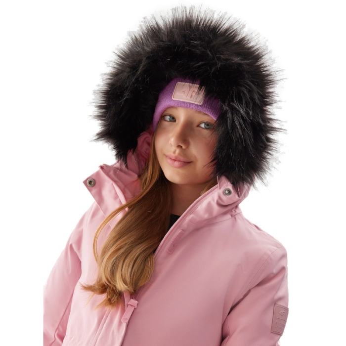 Dievčenská bunda značky 4F. Dievčenská vetrovka upúta krásnou ružovou farbou, ktorá pôsobí veľmi príjemným dojmom.Bunda na jeseň je doplnená o vstavanú kapucňu s umelou kožušinkou, ktorá je odnímateľná.