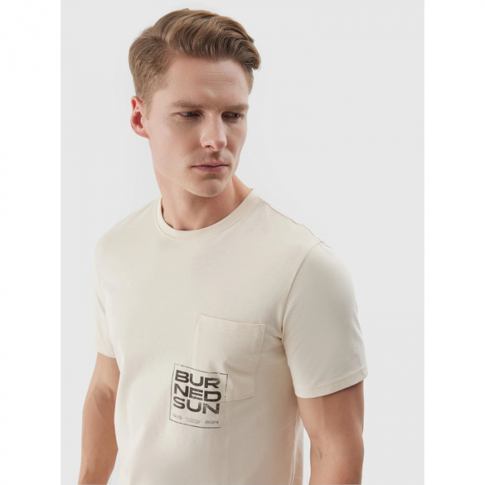Pánske tričko značky 4F. Športové tričko v univerzálne béžovej farbe bolo vyrobené z organickej bavlny.Tá umožňuje pokožke dýchať a dobre absorbuje vlhkosť.
