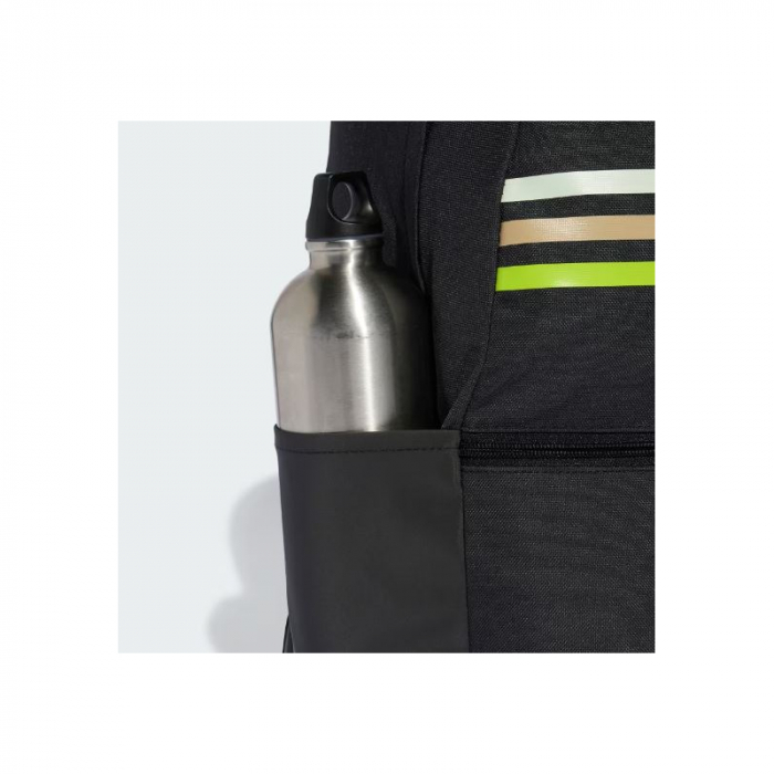 Značkový ruksak disponuje po bokoch vreckami, ktoré sú ideálne na fľašu s vodou. Plusom je spevnená spodná časť, ktorá predlžuje životnosť ruksaku adidas. Batoh do školy má nastaviteľné a polstrované ramenné popruhy, ktoré si viete individuálne prispôsobiť.