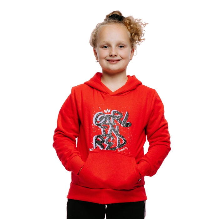 Dievčenská mikina značky Authority. Mikina s kapucňou je navrhnutá v roztomilom dizajne. Trendy mikinu zdobí pekná grafika na prednej strane, ktorú tvorí nápis Girl in red.Praktická kapucňa príde vhod v chladnejšom období.