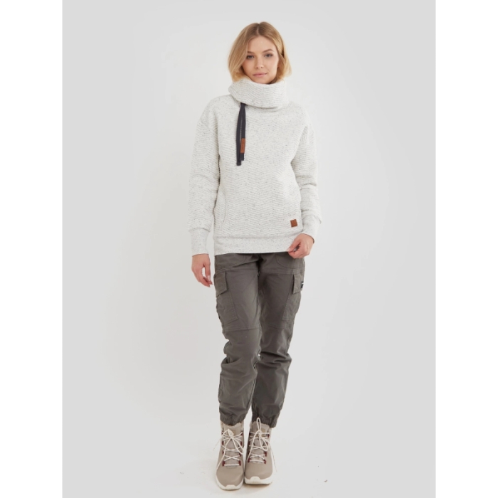 Dámska mikina značky Fundango. Štýlová mikina vyniká veľkým širokým golierom s ozdobnými šnúrkami, ktorý je trendy a ochráni Váš krk pred chladom a vetrom.Má príjemnú farbu a štruktúrovaný materiál, ktorý poskytne tepelný komfort.
