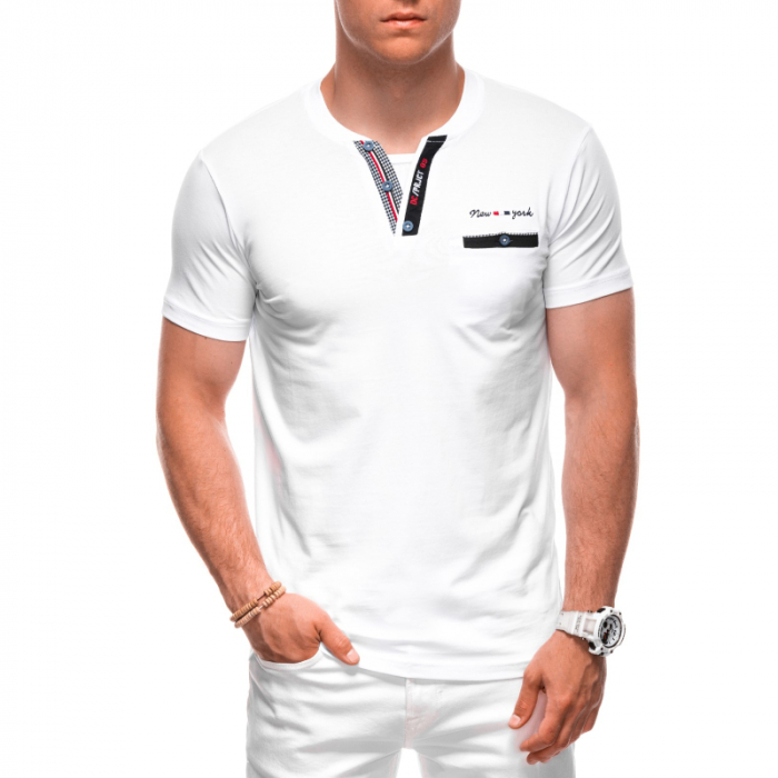 Pánske tričko značky Ombre. Štýlové tričko pre pánov má náprsné vrecko a malú potlač.Disponuje krátkym rukávom a vyniká aj kontrastnou gombičkovou légou v tvare V.