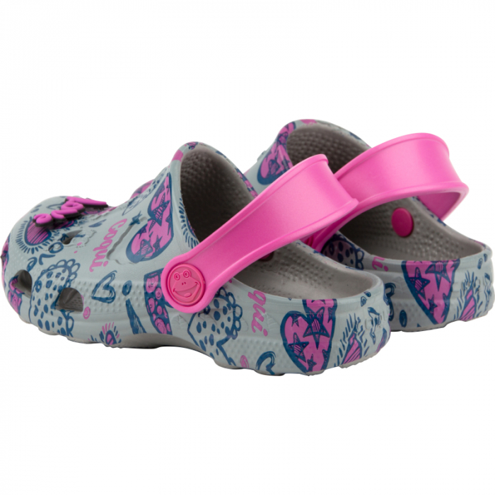 Sivé kroksy s ružovými prvkami sú skvelými spoločníkmi na voľnočasové aktivity, na dovolenky, výlety, na pláž aj k vode.