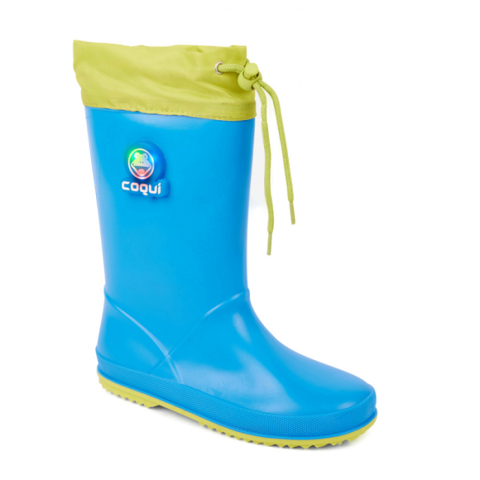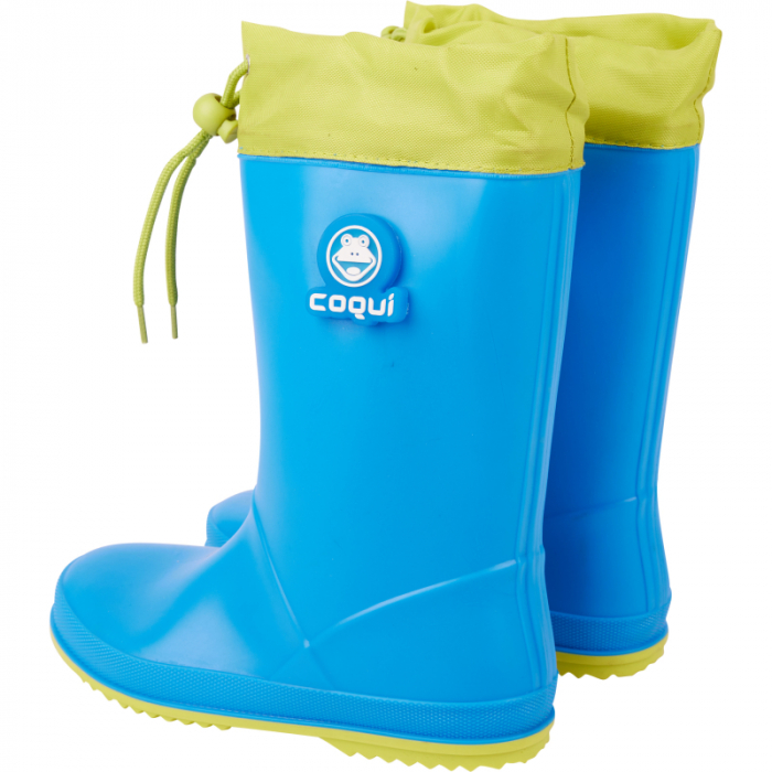 Gumáky Coqui Rainy Collar majú vrchnú časť zakončenú nepremokavým materiálom žltej farby, ktorý sa dá stiahnuť šnúrkou. Už žiadna voda vo vnútri gumových čižiem.Gumáky pre deti sú z ľahkého, pružného a odolného materiálu CoquiFlex.