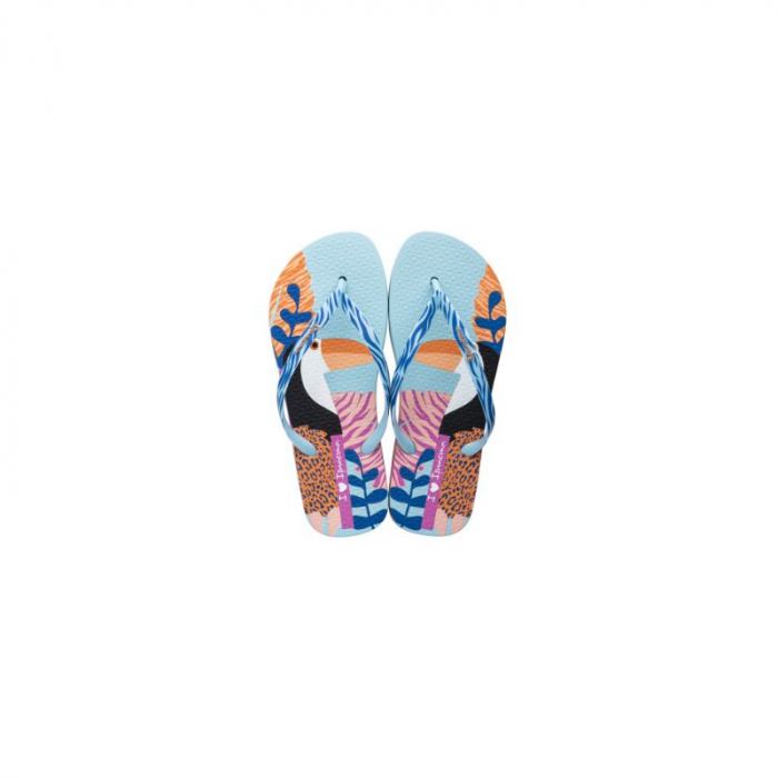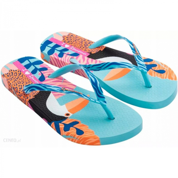 Dámska obuv značky Ipanema. Dámske žabky upútajú štýlovým dizajnom s motívom tukana.Modré žabky sú pohodlné a príjemné na nosenie aj počas celého dňa.