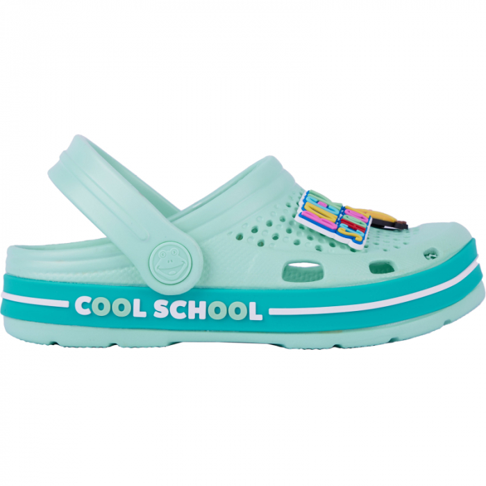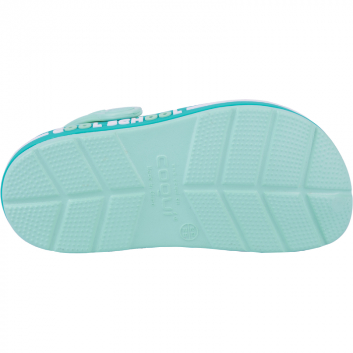 Dievčenská obuv značky Coqui. Kroksy pre dievčatá pritiahnu pozornosť krásnou tyrkysovou farbou. Dievčenské kroksy zdobí modrý pásik s nápisom Summer Vibes.Zvršok detskej obuvi je perforovaný pre vynikajúcu priedušnosť.