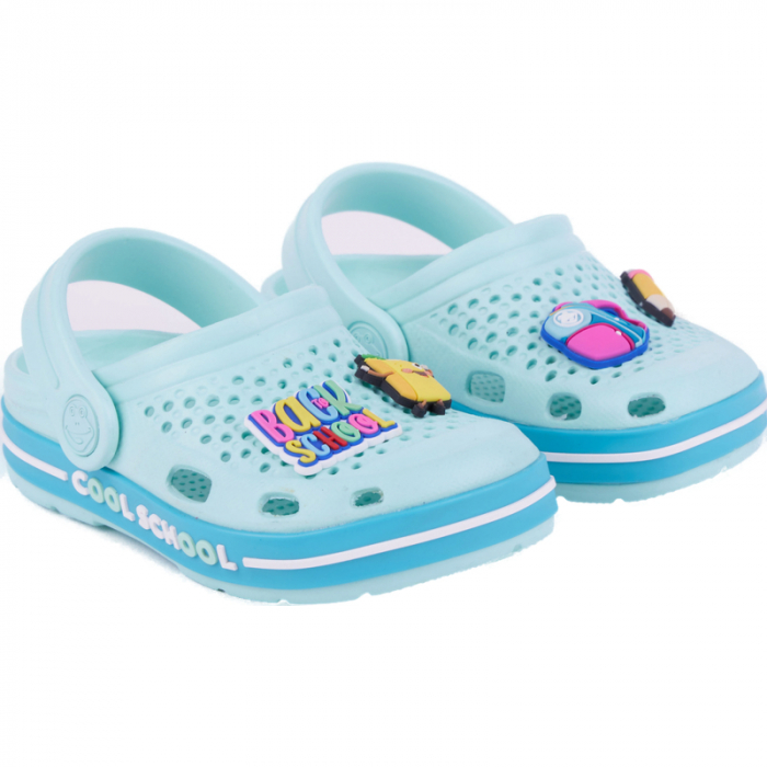 Zdobia ho obrázky v pestrých farbách ako napríklad farebný ruksak či ceruzka.Detské crocsy sú vyrobené z odolného materiálu, ktorý je tvarovo stály.