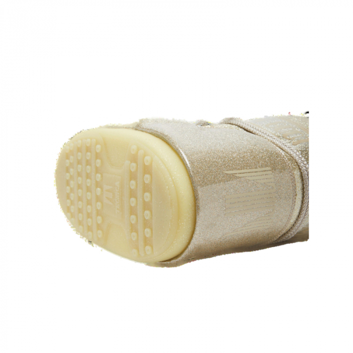 Dámska obuv značky Moon Boot.Topánky na zimu spoľahlivo zahrejú a izolujú aj v mrazivom počasí. Zlatá farba topánok na zimu je doplnená lesklým trblietavým efektom.
