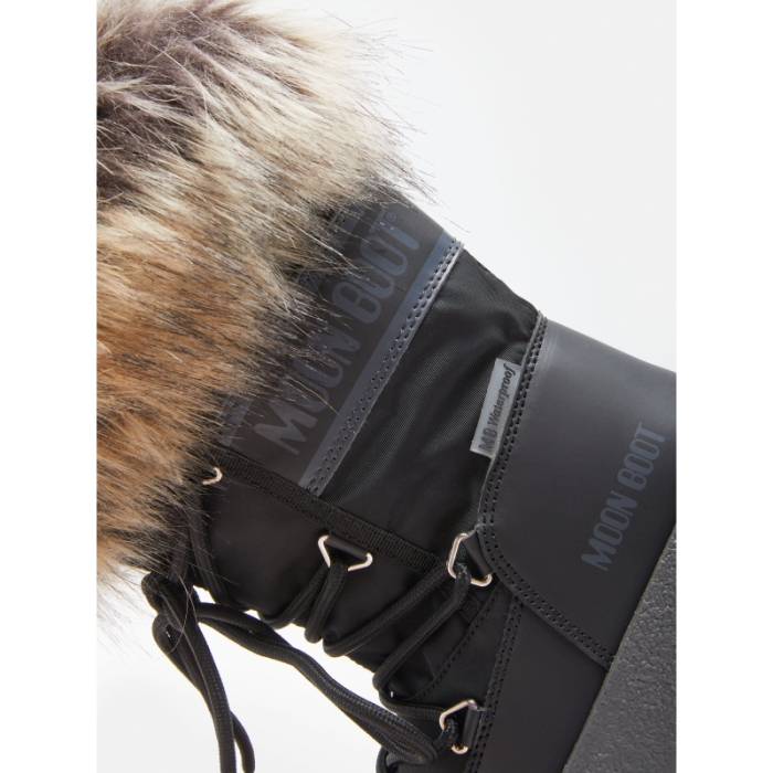Juniorská obuv značky Moon Boot. Štýlové snehule očaria všetky slečny krásnou kožušinou.Zaujímavým prvkom je aj viazanie na prednej strane, ktoré siaha až po vrchnú časť topánky. Polstrovaný nylonový materiál a vodeodolná membrána sa postarajú o kvalitu a nepremokavosť.