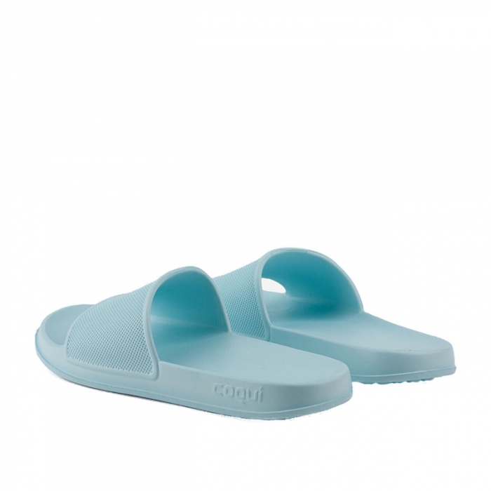 Dámska obuv značky Coqui.Dámske šľapky Tora majú jednoduchý dizajn v pastelovej modrej farbe, ktorá je v lete vždy trendy.