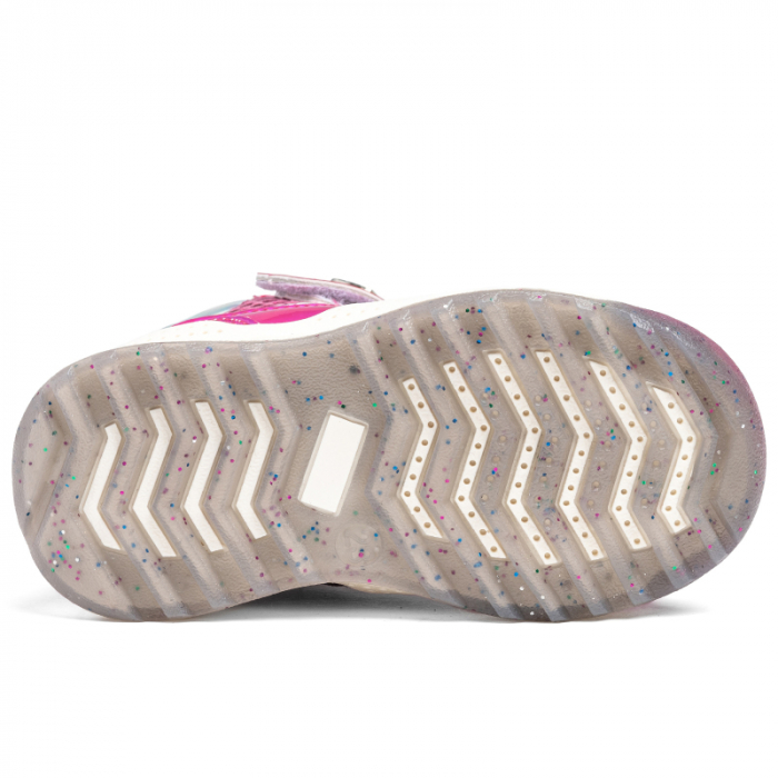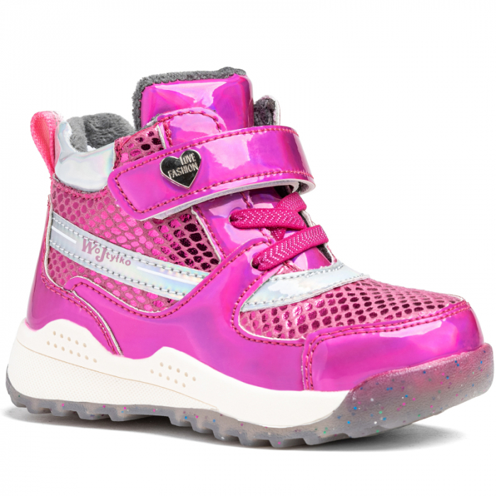 Dievčenská obuv značky Wojtylko. Detské topánky majú pekný dievčenský dizajn.Trblietavá potlač na zvršku a rôzne ozdôbky potešia všetky mladé parádnice.