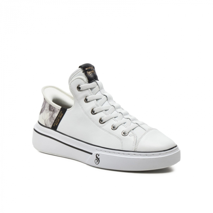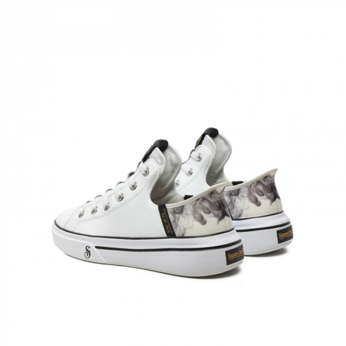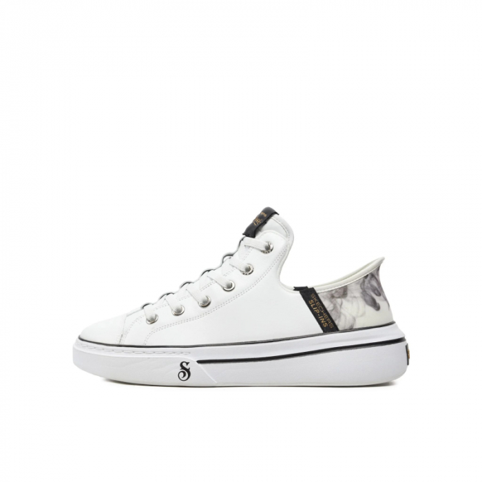 Biele tenisky zdobí "dymová" potlač v oblasti päty.
