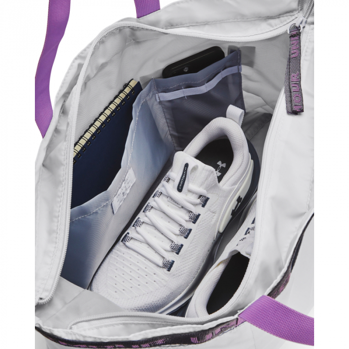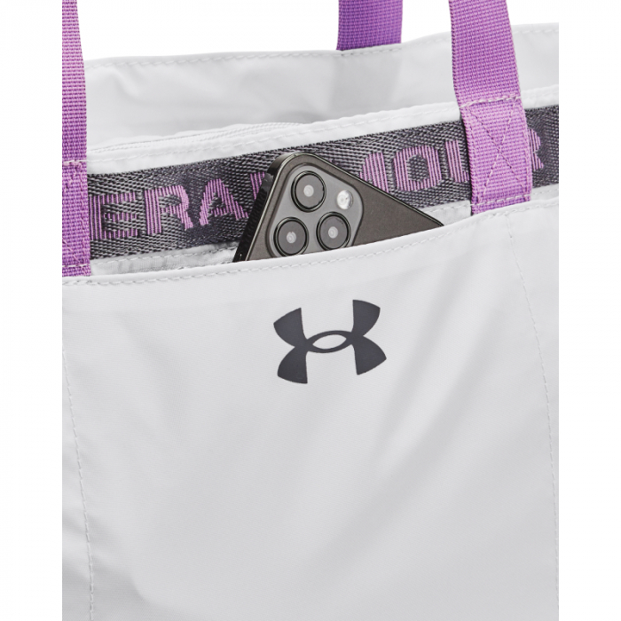 Štýlová taška dámska má logo značky a nápis UA na prednej strane.