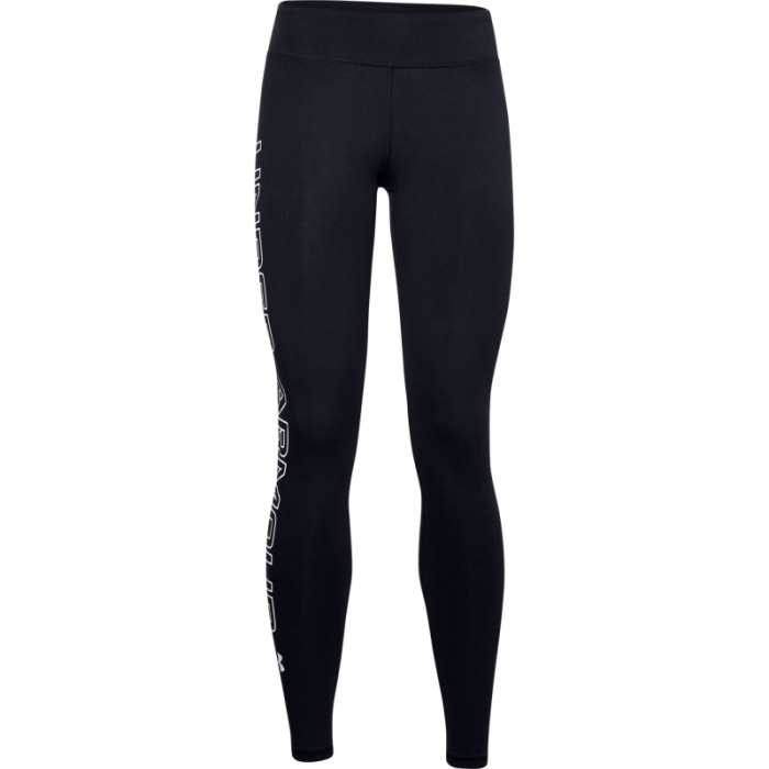 Dámske legíny značky Under armour.Čierne legíny s výraznou grafickou potlačou na pravej nohavici zaujmú jednoduchým a funkčným dizajnom.