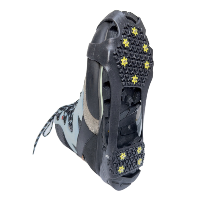 Stačí ich opláchnuť čistou vodou a neutrálnym mydlom a nechať voľne vyschnúť. Testované podľa EN 893:2019 v súlade s Nariadením (EU) 2016/425. Nevhodné pre horolezectvo, neslúži ako náhrada horolezeckých mačiek.