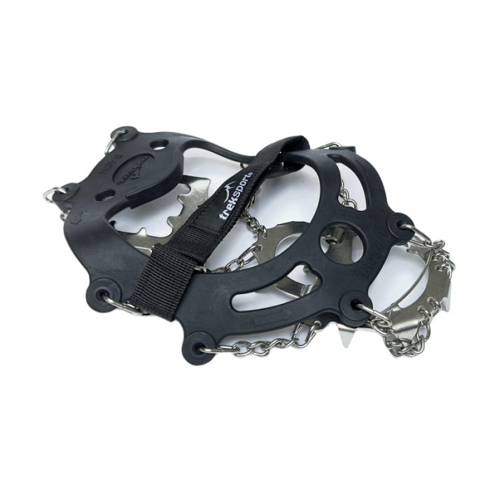 Turistické mačky značky Treksport. Turistické mačky na topánky sú určené všetkým, ktorí milujú chodenie po zasneženom alebo zľadovatenom teréne alebo chcú predísť šmyku a potrebujú stabilitu. Sú vhodné nielen na chodenie po turistických chodníkoch, ale všade, kde Vám sneh a ľad na zemi robí problémy.Teda aj v meste na chodníku či na dedine.