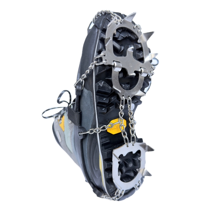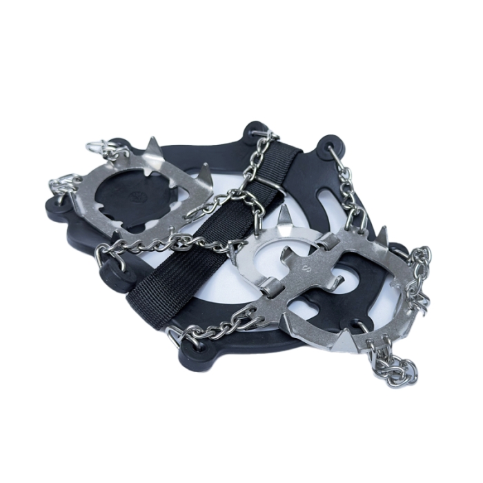 Konštrukcia, ktorá sa prichytáva na obuv pomocou retiazok a gumového lemu je z kvalitných a odolných materiálov odolávajúcich mrazu.
