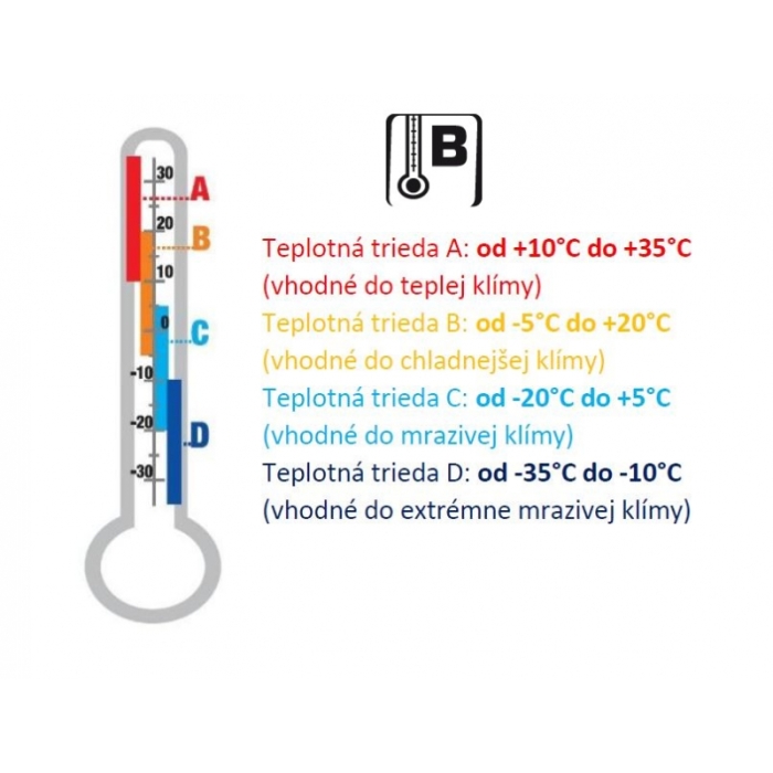 Ponožky patria do teplotnej triedy B: od -5°C do + 20°C.
